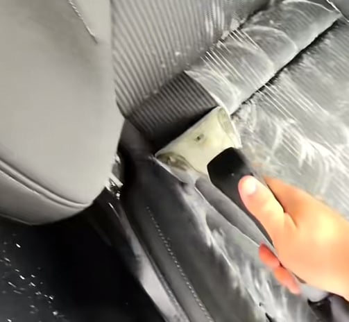 Aspiration en profondeur de l’ensemble de l’habitacle : sièges, tapis, moquette, coffre, recoins difficiles d’accès, dessous de sièges et pédalier.